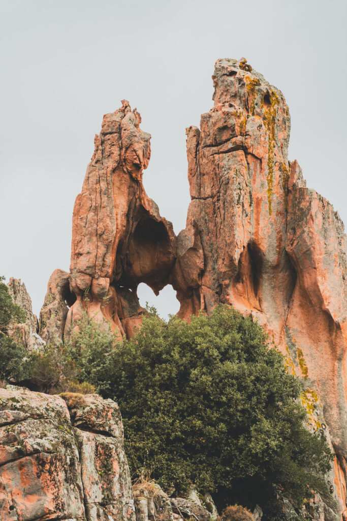 This stunning coastline between Porto and Piana is carved from red porphyry—a volcanic rock sculpted by wind and water over thousands of years into wild, otherworldly shapes. One formation even looks like a heart, etched perfectly by erosion.
