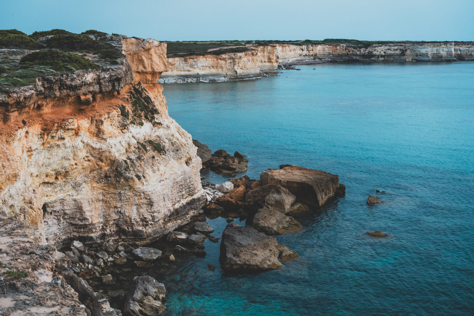 This stretch of coast felt like it was waiting for us. After leaving Torre di Barì behind, we wandered off in search of a place where the Defender could tuck itself right against the sea. What we stumbled upon was less of a parking spot and more of a painting come to life — a natural canvas brushed in blues, greens, and desert hues.